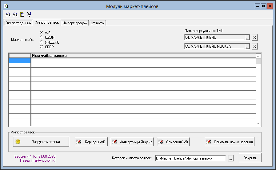 | «NCC: Модули маркетплейсов» (WB, OZON, Яндекс, Сбер) | Предназначены для работы в личном кабинете маркетплейсов (WB, OZON, Яндекс, Сбер). Обмен данными осуществляется через Excel-файлы в полуавтоматическом режиме (есть другой автоматический режим через API-интеграции, но он более сложный и не всегда подходит заказчику).