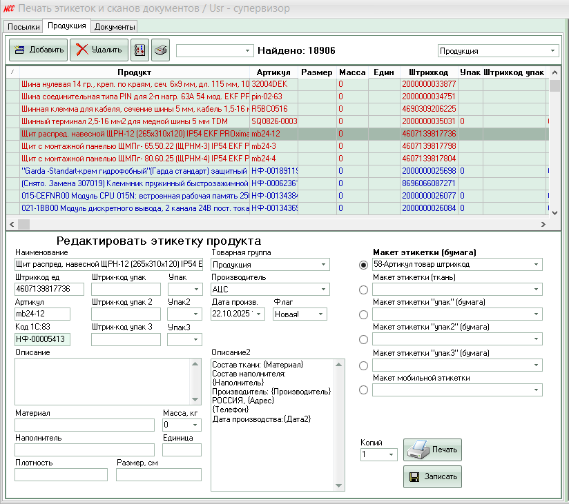 Также, к программе идёт Android-приложение «NCC: Мобильные этикетки», которое позволяет печатать заданное количество этикеток выбранной по артикулу номенклатуры, с выбором ближайшего принтера этикеток (рекомендуем модель «Godex G500»). |